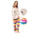 Conjunto de Pijama Feminino Pelúcia 2 Peças Calça e Blusa Snoopy Arco Iris Colorido