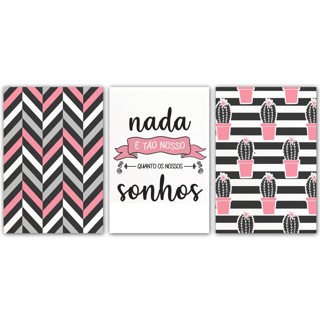Quadro Decorativo 3 Peças Nada é tão nosso quanto nossos sonhos Religioso Delicado Simples Geometrico Salmos Triangular Triangulos Moderno Abstrato Hipster Conceitual Frases Efeito Motivacional Sala Minimalista Quarto Sala