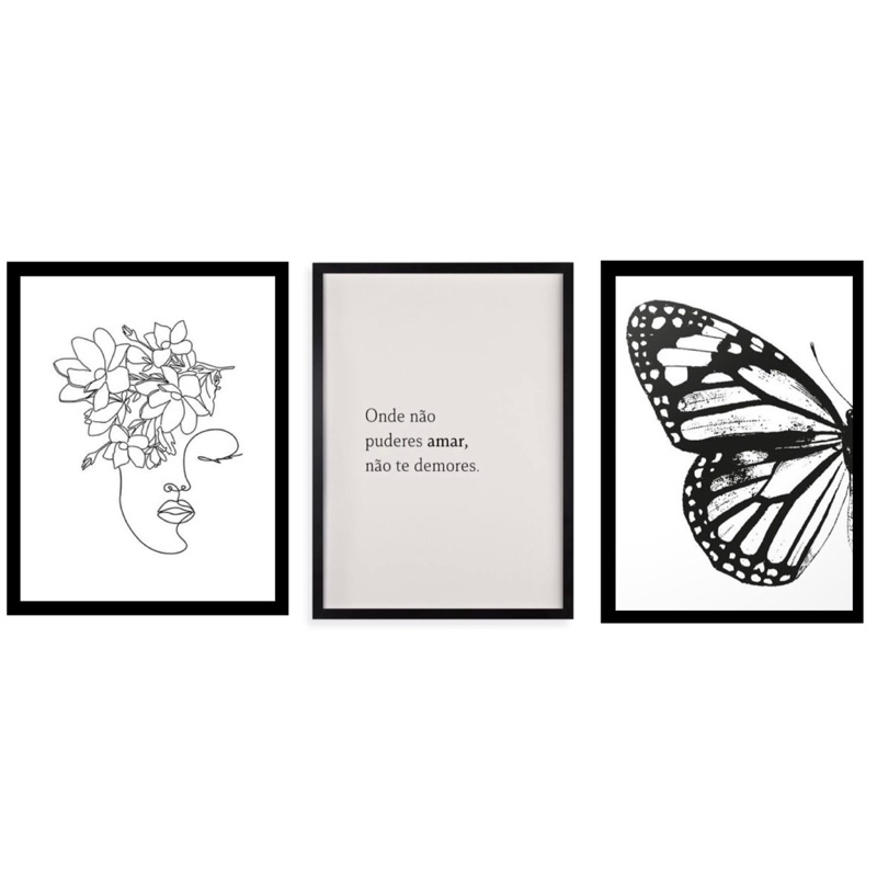 Quadro Decorativo 3 peças 40x60 Borboleta Face Minimalista Amor