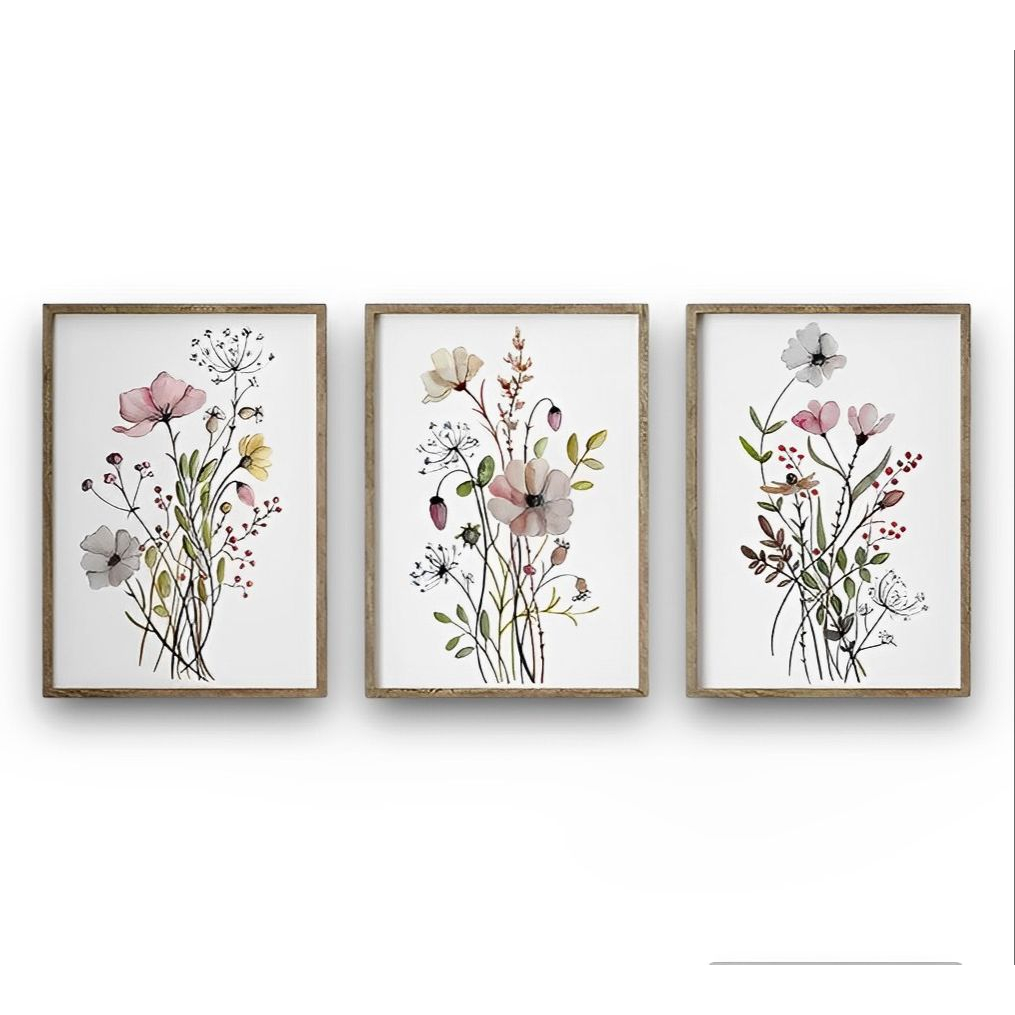 Quadro Decorativo 3 peças 40x60 Flores do Campo Minimalista