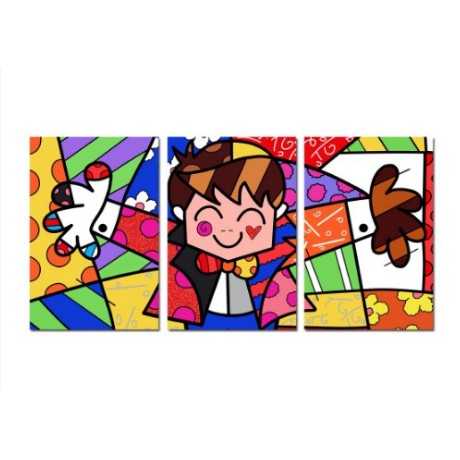Kit Quadro Decorativo 3 Peças Abraço Hugh Romero Brito Abstrato Colorido Vintage Minimalista Geometria Famoso