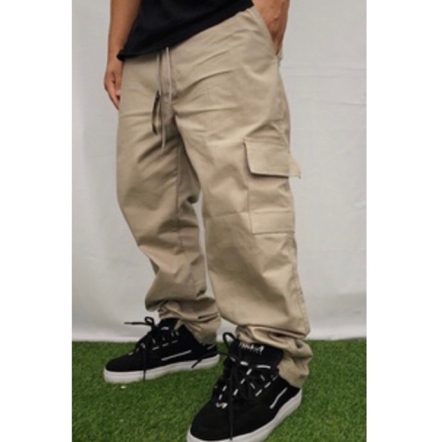 Calça Cargo Larga Masculina Skate Hip Hop Parachute Caqui 5 Bolsos Cordão Fechamento Jogger Preta Bege Esportiva Sk8