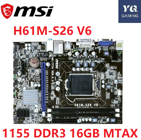 MSI H61M-S26 V6 Desktop Computer Motherboard LGA 1155 DDR3 For Intel H61 H61M Desktop Mainboard SATA II Used