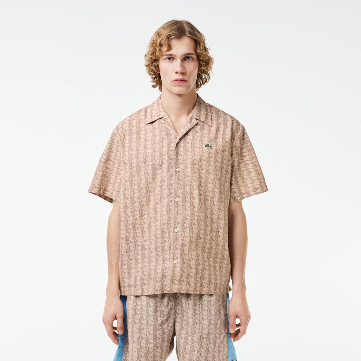 Camisa Lacoste De Botão Manga Curta Com Estampa De Monograma Masculina