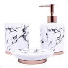 Kit Jogo de Banheiro Lavabo Porcelana 3 Peças Com Dispenser Sabonete Líquido e Porta Escova de Dente
