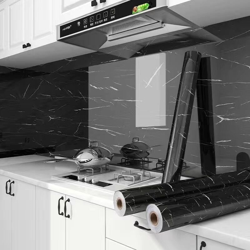 Papel De Parede Adesivo Mármore Preto Brilhante Lavável 4,5 METROS X 60CM Renove Seu Moveis Bancada Ambiente Cozinha Banheiro