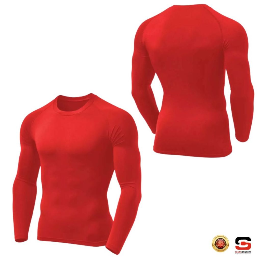 Camisa Térmica Vermelha Unissex Manga LongaProteção Solar Uv 50 Segunda Pele P M G GG