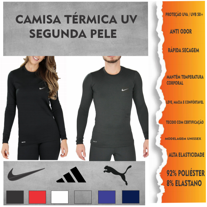 Camisa Térmica Unissex Tecido Uv 50+ P M G GG Segunda Pele Proteção