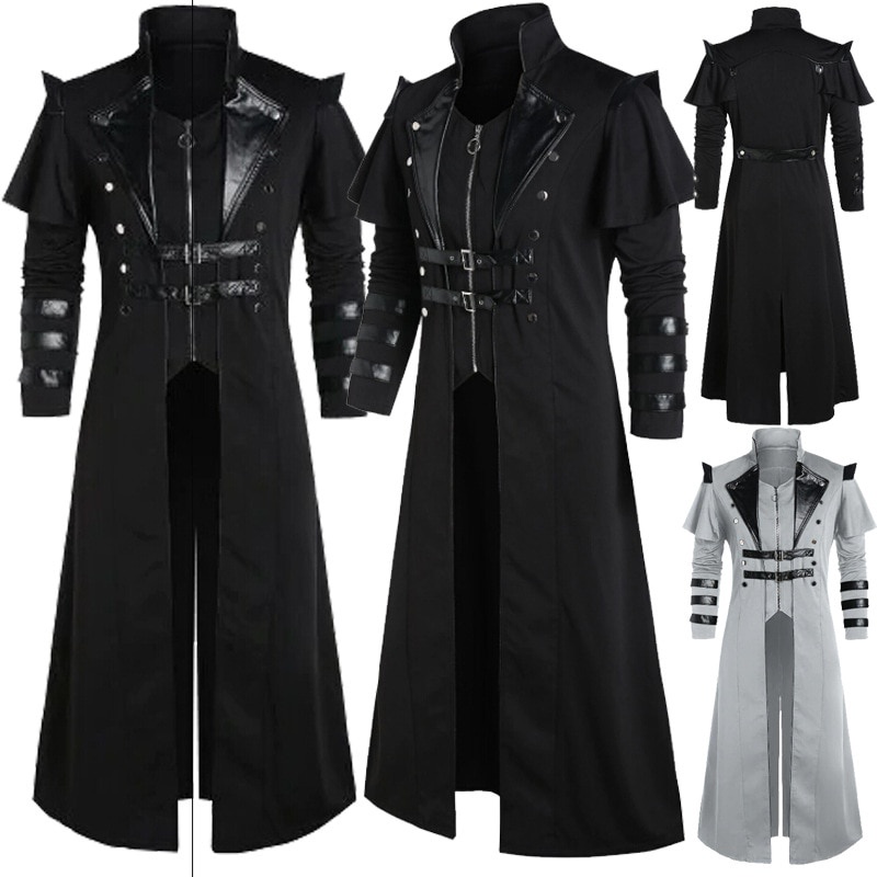 Casaco De Couro Vintage Halloween Medieval Steampunk Assassin Elves Pirata Fantasia Adulto Homens Preto Jaqueta Longa Dividida Gótica Armadura Casacos