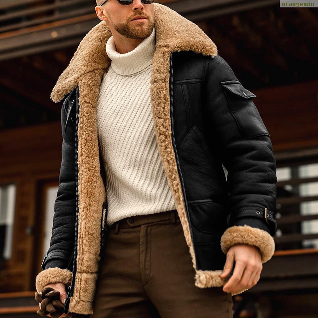 Casaco Vintage De Pele De Couro Para Homens Com Colarinho De Camurça Moda Única