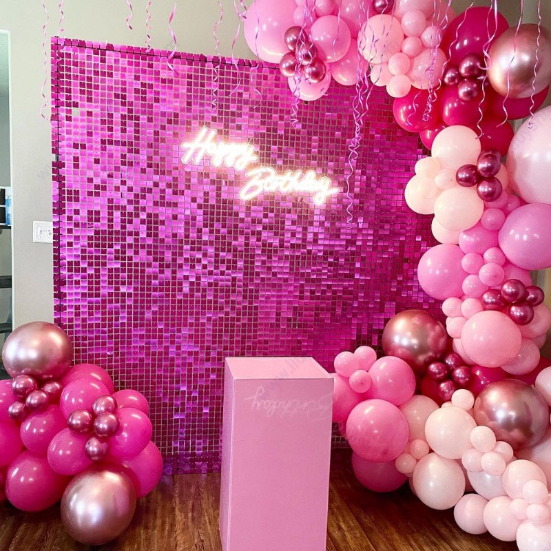Painel Cortina Festa Metalizada Pink Quadradinha Decoração Parede Fundo Para Festas