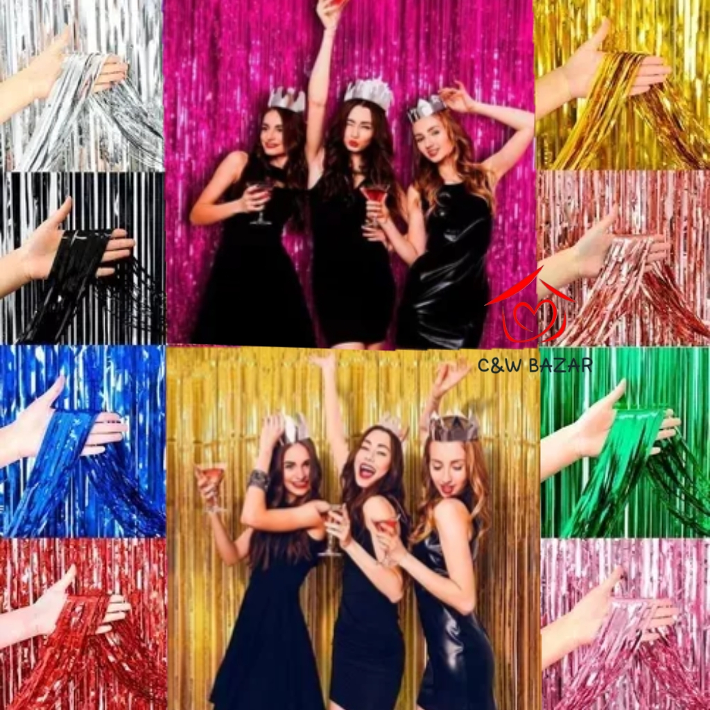 Cortina Metalizada Franja Decoração Parede Fundo para Festas Brilhante
