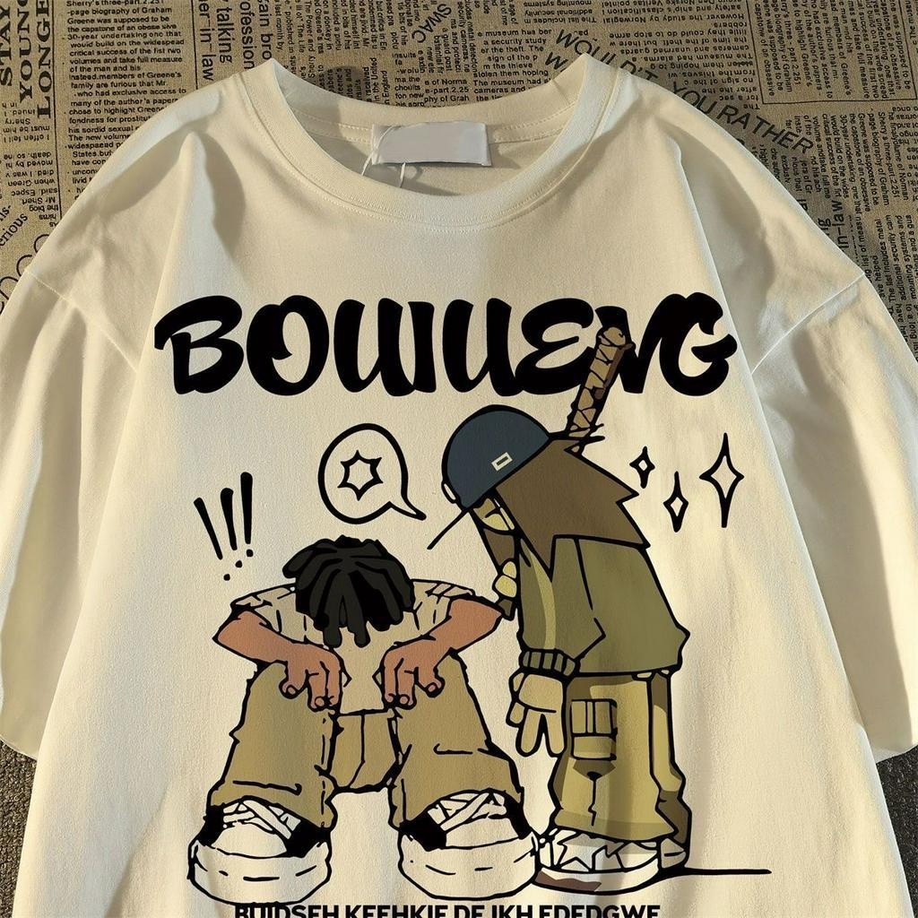 Camiseta Americana Retro Cartoon Puro Algodão De Manga Curta Homens Soltos Em Estilo Hip-Hop De Rua