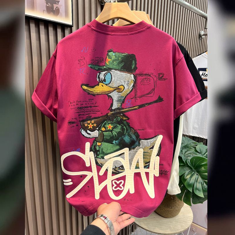 Camiseta de Pato de Verão Americana de Rua Americana de Verão Camiseta de Manga Curta Casual Puro Algodão Puro para Homens