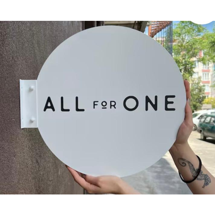 Placa Painel Letreiro para fachada 40cm Loja Comercio Empresa Escritório Salão Frente e Verso Uso Interno Externo Redonda Personalizada com seu Logotipo