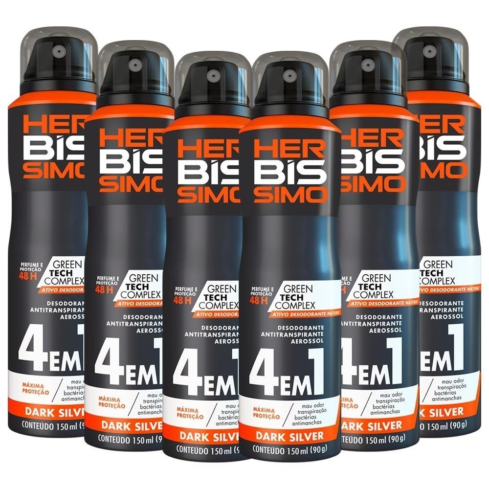 Desodorante Aerossol Herbíssimo Dark Silver 48h 150ml - Kit c/ 6 unidades