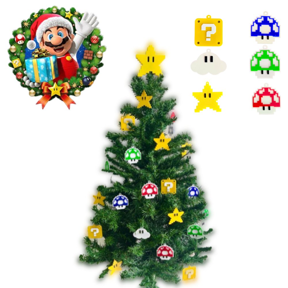 Kit Enfeites De Natal Arvore Super Mario Árvore Geek Com Estrela Topo Geek