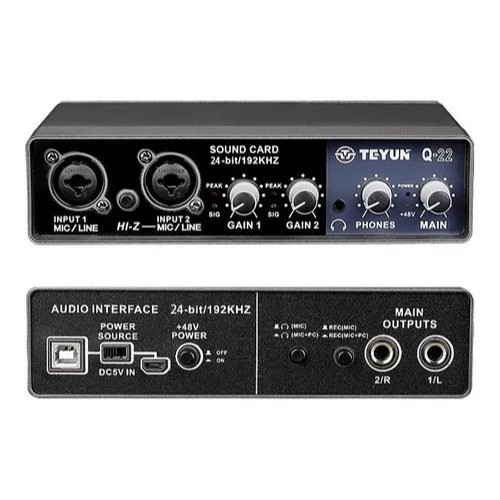 Teyun Q-22 Interface De Áudio Usb Gravação 24bits 192 kHz Placa De Som 2 Canais Com Monitoramento Para Gravação