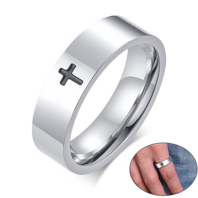 Anel Cruzado De Prata Para Homens Mulheres Faixa De Casamento De Aço Inoxidável Unisexo Religioso Cristo Jóias