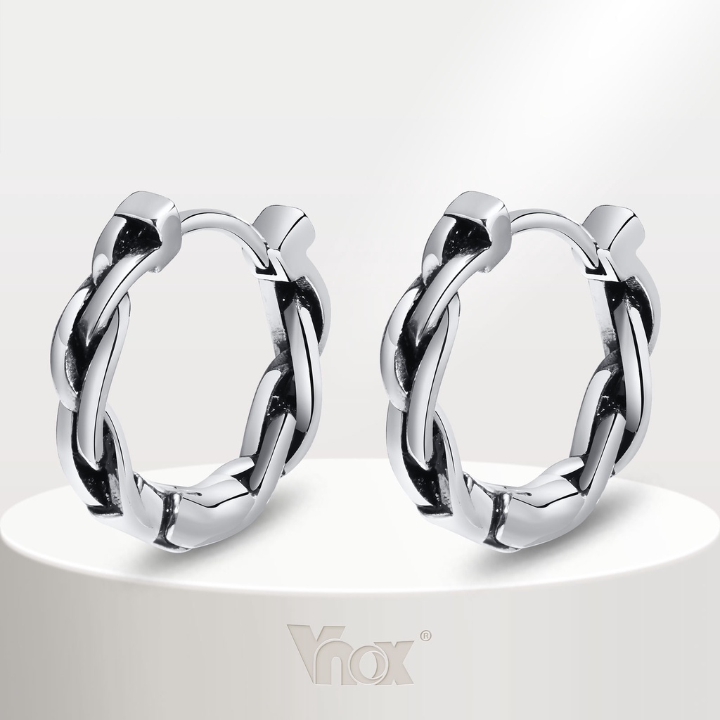 Vnox Fashion Vintage Brincos De Argola Torcida Para Homens , Nunca Desbota Cor Prata Argolas Leves De Aço Inoxidável Jóias Da Moda Masculina