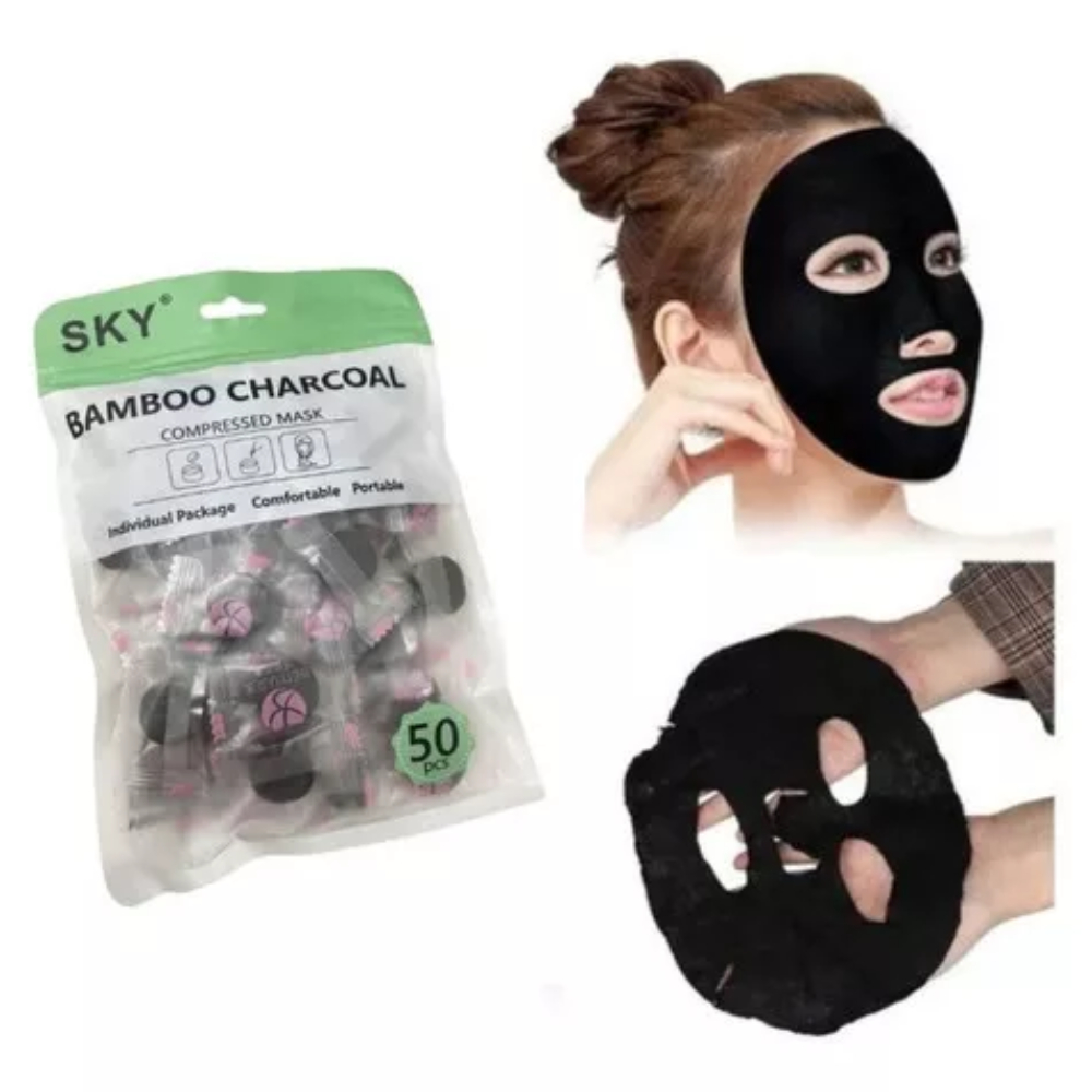Kit 100 Máscaras Facial Preta Carvão De Bambu Desidratada Descartável Limpezal Para Skin Care