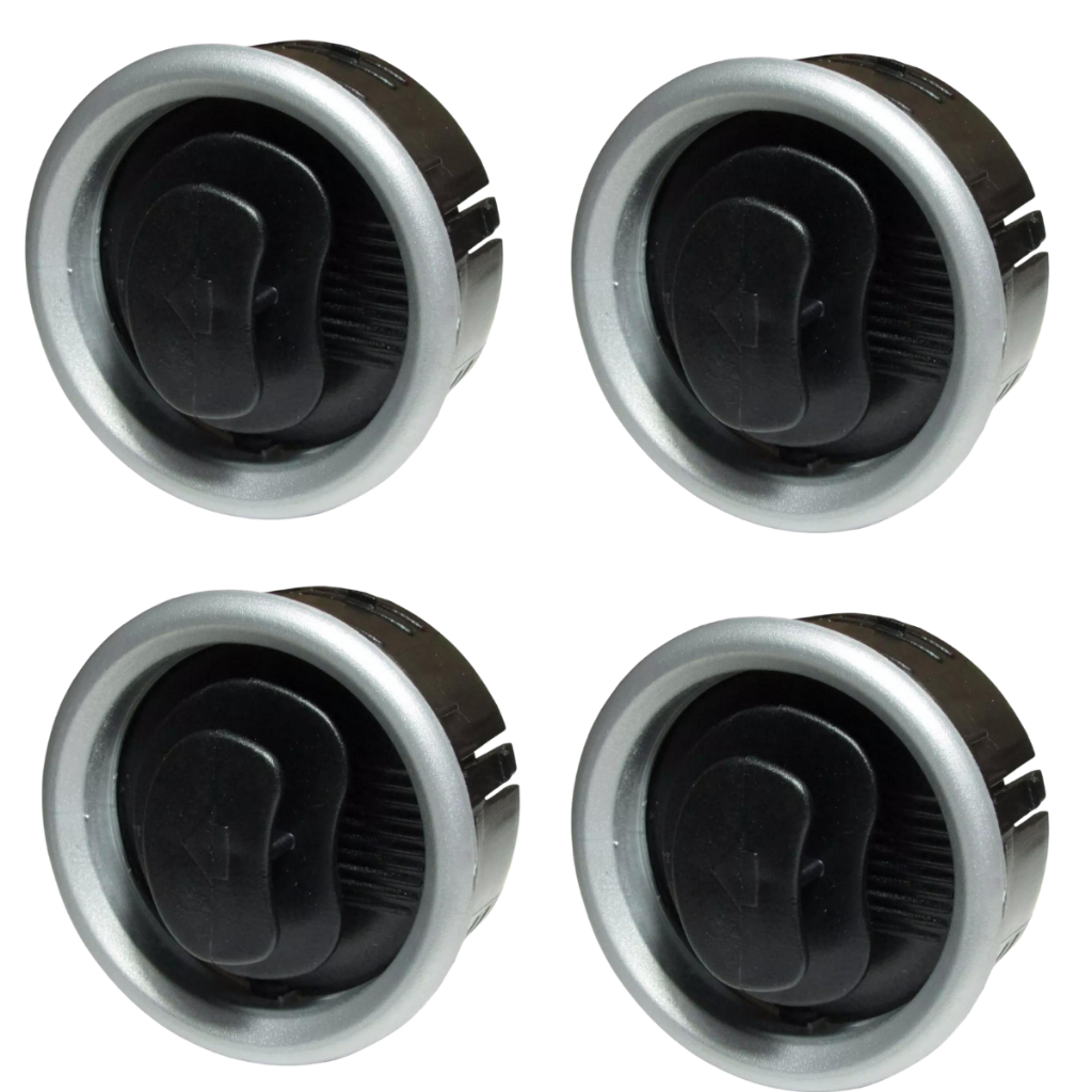 Kit com 4 Difusores de Ar Condicionado GM Celta Cor Preto Com Aro Prata 2001 02 03 04 05 2006