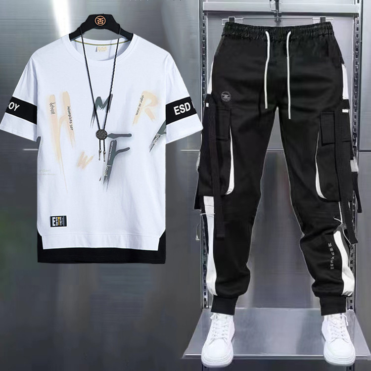 Calças De Carga Masculina Casual Joggers +'Conjunto De Homens Com Camiseta Manga Curta E Estilo Hip Hop