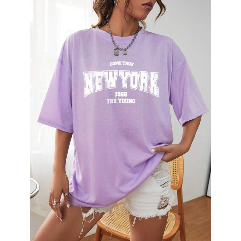 Camiseta Feminina Corte Reto Oversized Estilo de Rua New York The Young
