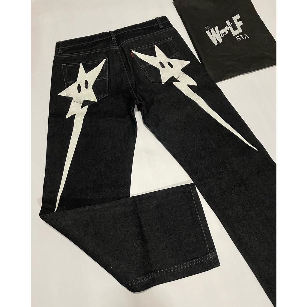 Streetwear Y2k Jeans Hip Hop Star Print Calças De Ganga Folgadas Pretas Mulheres Homens Novo Harajuku Casual Gótico Perna Larga
