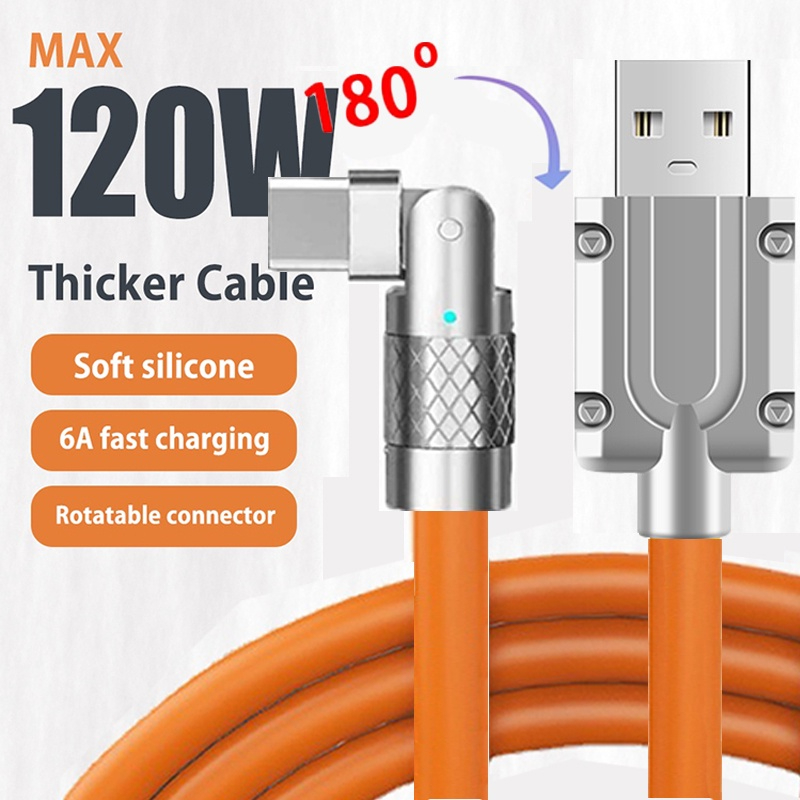 120W 6A Carregamento Super Rápido 180 ° Cabo De Carga Rápida De Silicone Líquido Rotativo Para Carregador De Jogos Móveis Tipo C Xiaomi iPhone 13 pro 14