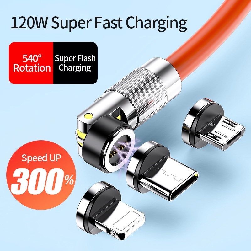 120W 6A 540 ° Cabo Carregador Magnético Rotativo Super Rápido De Silicone Líquido Jogos Micro Usb/Type-c