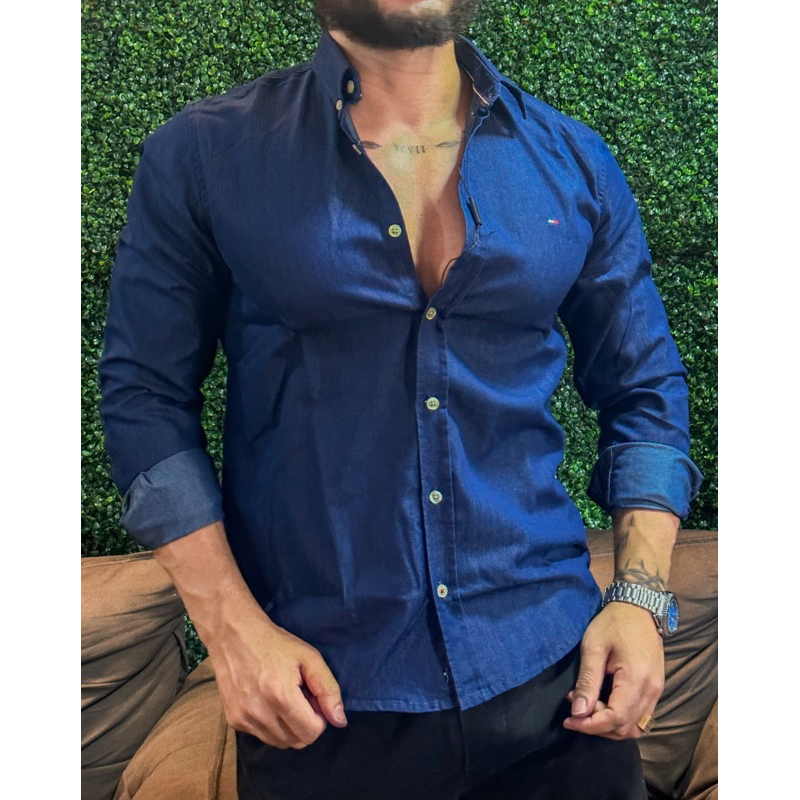 Nova coleção Camisa Jeans 2 cores Manga longa P ao XXg Regular Fit Masculina Luxo Social Casual Festa Envio Imediato - Verão 2023