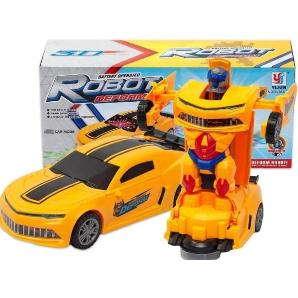 Brinquedo Carrinho Vira Robô Bate E Volta Com Luzes E Som Camaro Amarelo