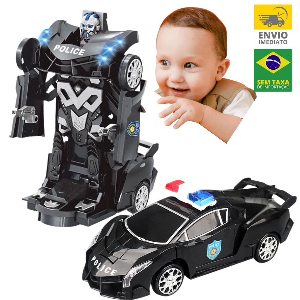 Carrinho de Policia Venon Transformes Vira Robô 2 em 1 Bate e Volta Luz e Som