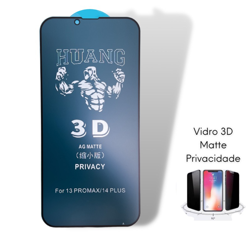 Película de Vidro 3D FOSCA e PRIVACIDADE para Iphone 14 Pro Max 13 12 11 X Xr 7 8 Plus