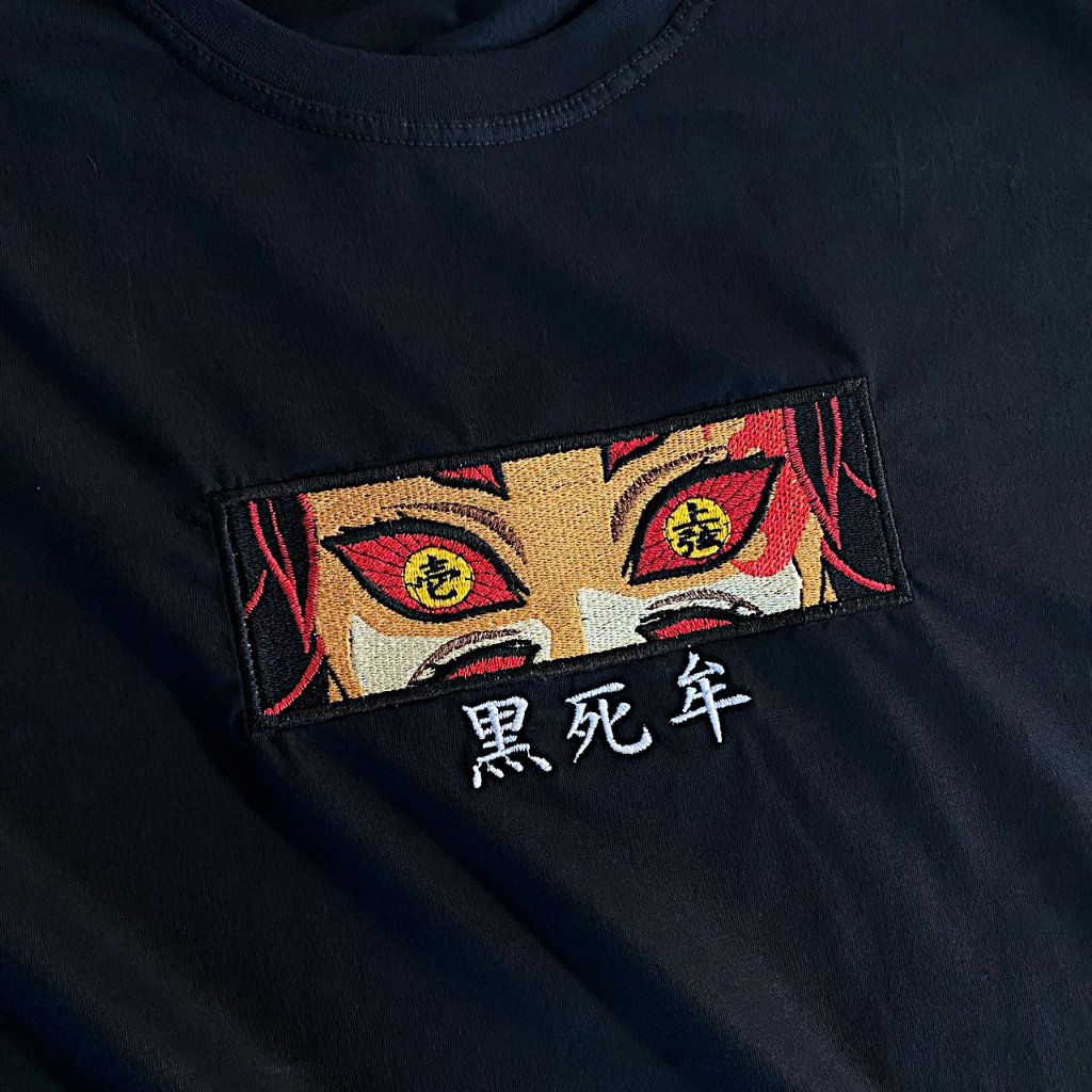 Camiseta Kokushibo Bordado anime Demon salyer camisa 100% algodão penteado Kimetsu lua