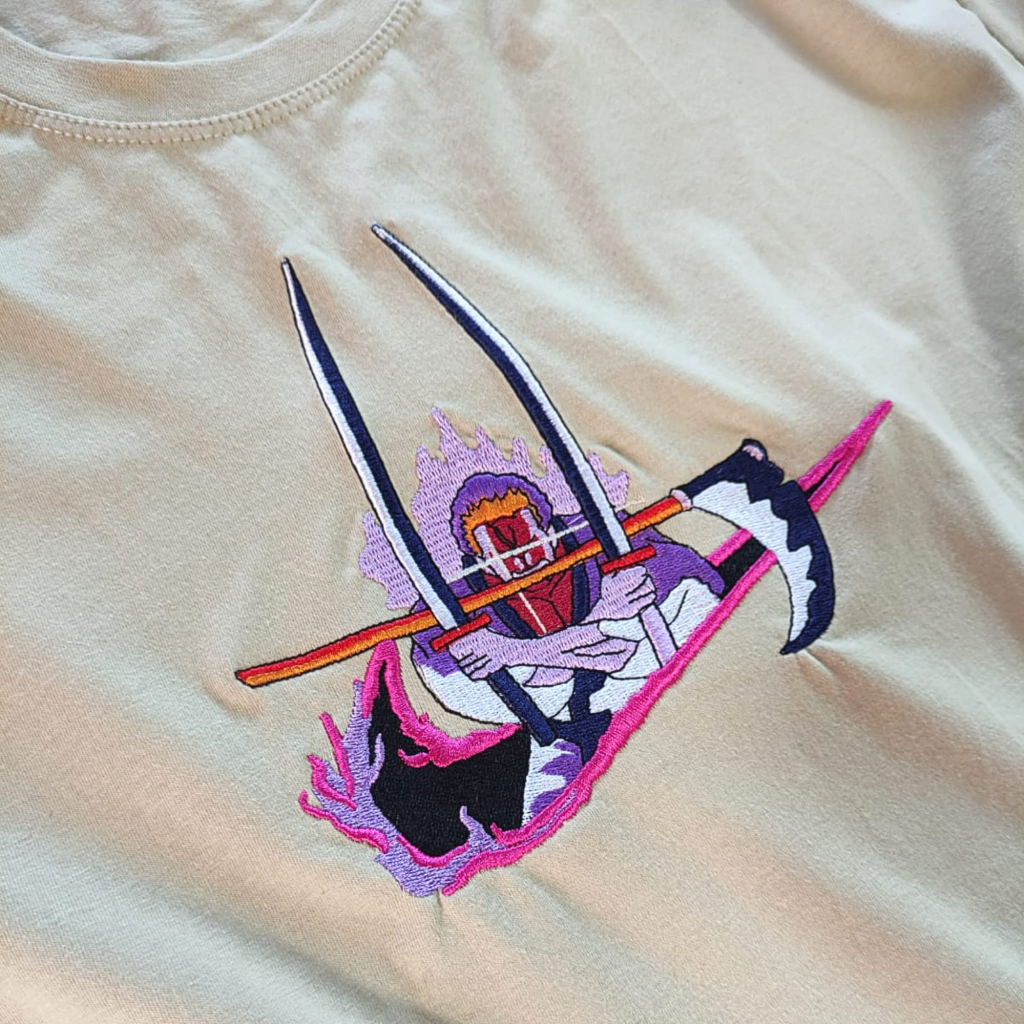 Camiseta Borboleta Shinobu Bordado anime Demon slayer camisa 100% algodao penteado kimetsu no yaiba