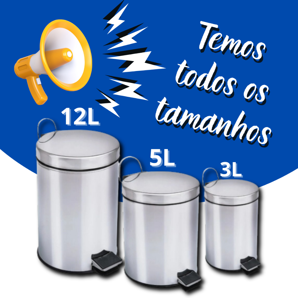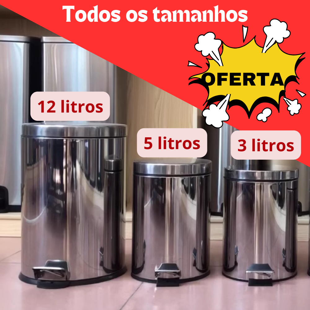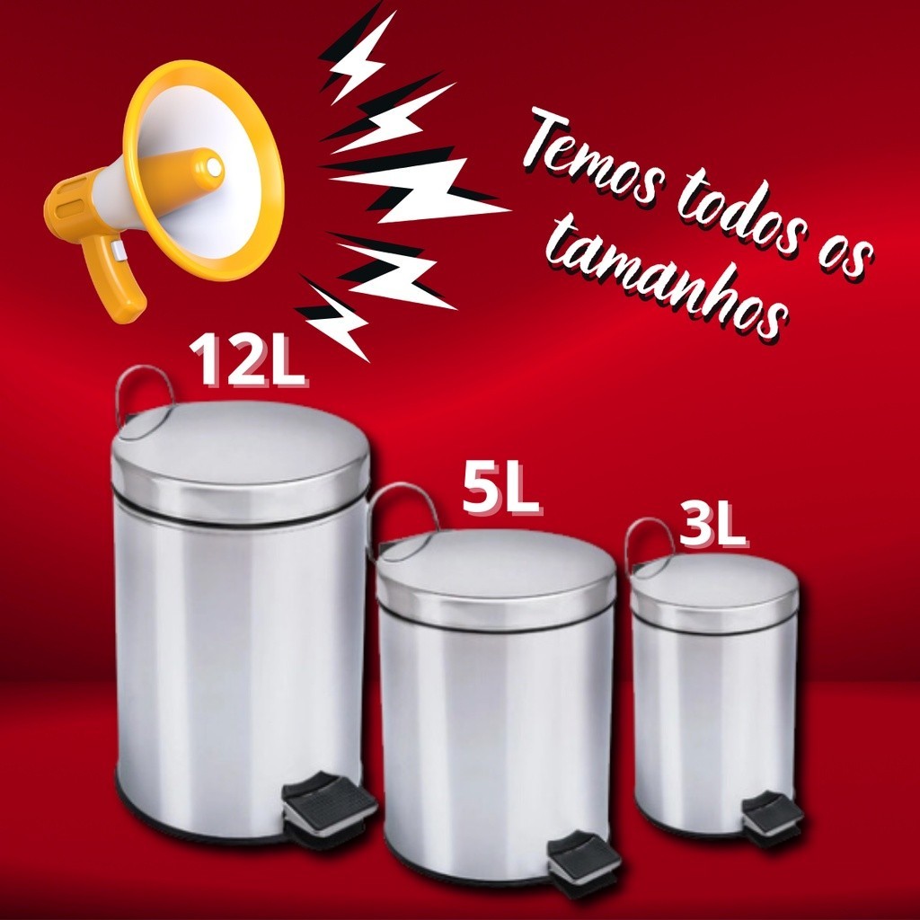 Lixeira 3L 5L E 12 Litros Em Aço Inox Brilhante Com Pedal E Cesto Removível Para Escritório Sala Banheiro