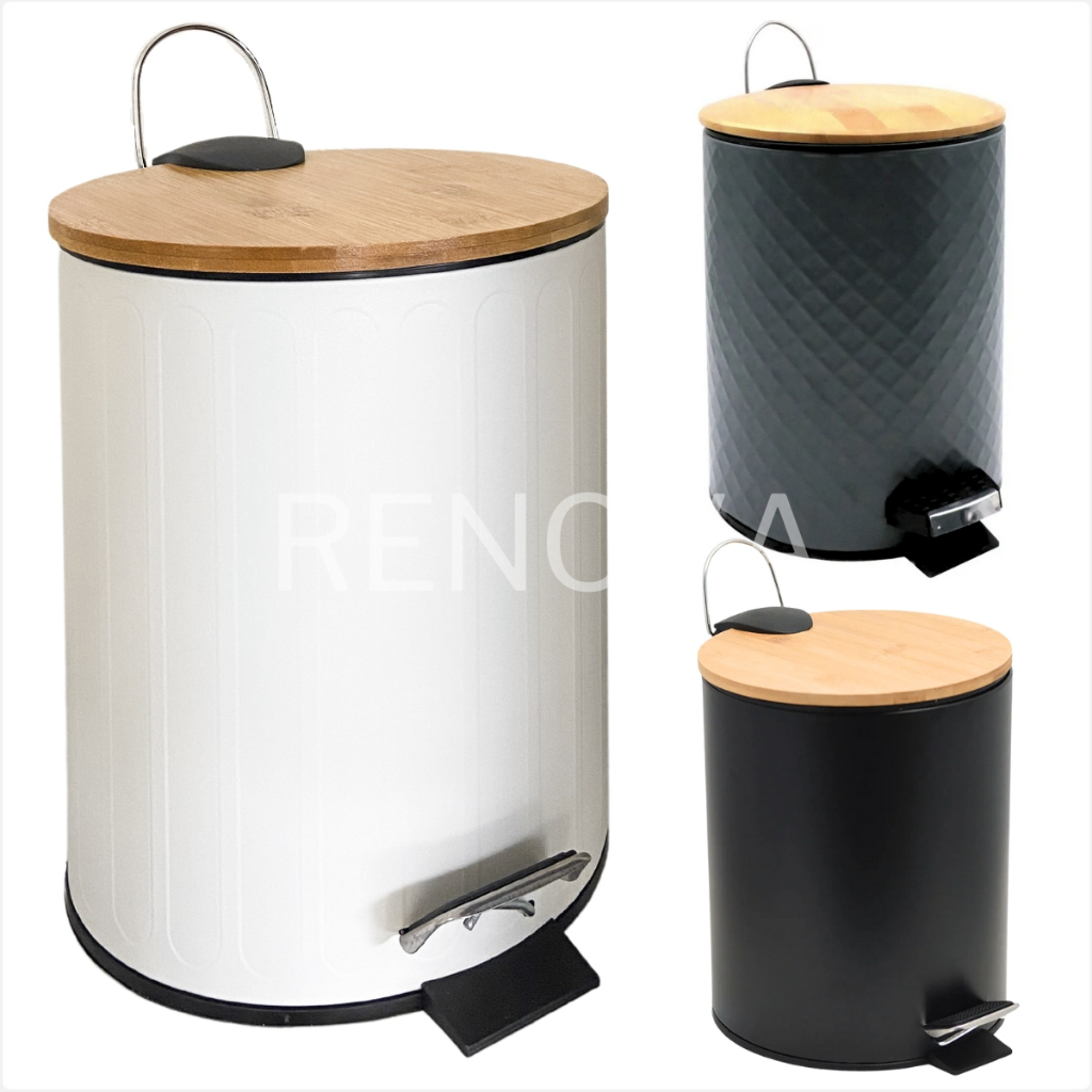 Lixeira Redonda Em Aço Inox Com Pedal E Tampa De Bambu 5 Litros