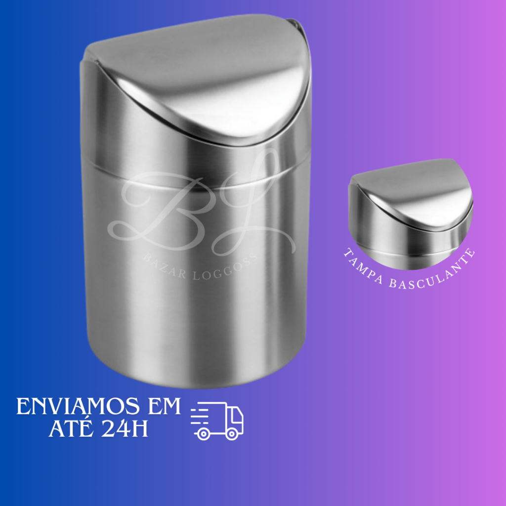 Lixeira De Mesa e Pia Cozinha Em Aço Inox Com Tampa | 1,5 Litros | 12 x 16,5 cm