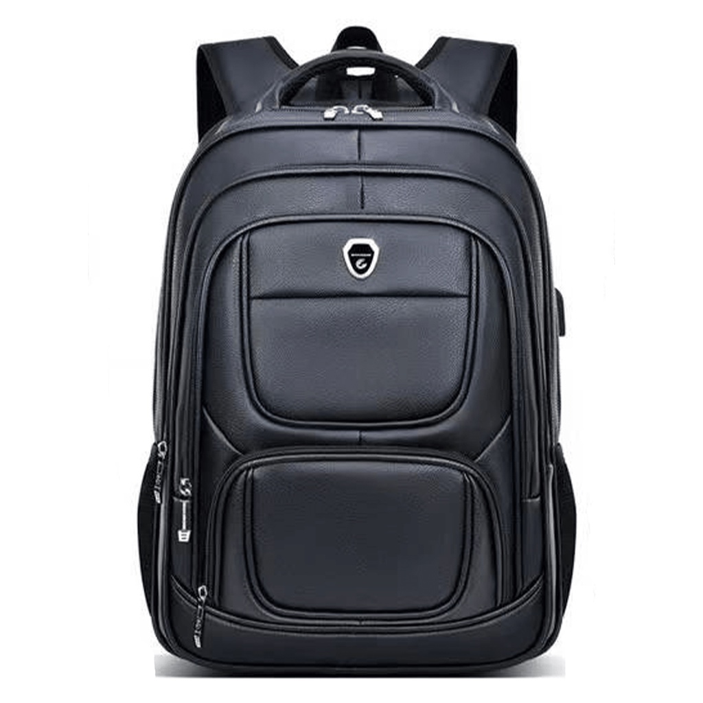 Mochila de Couro Feminina Masculina Preta reforçada Escolar Cabo Usb