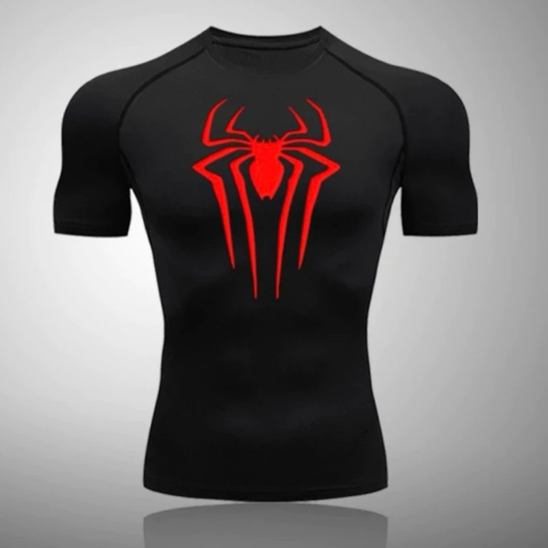 Camisa De Compressão Homem-Aranha Manga Curta Treino Ginástica Camiseta Seca Rápido