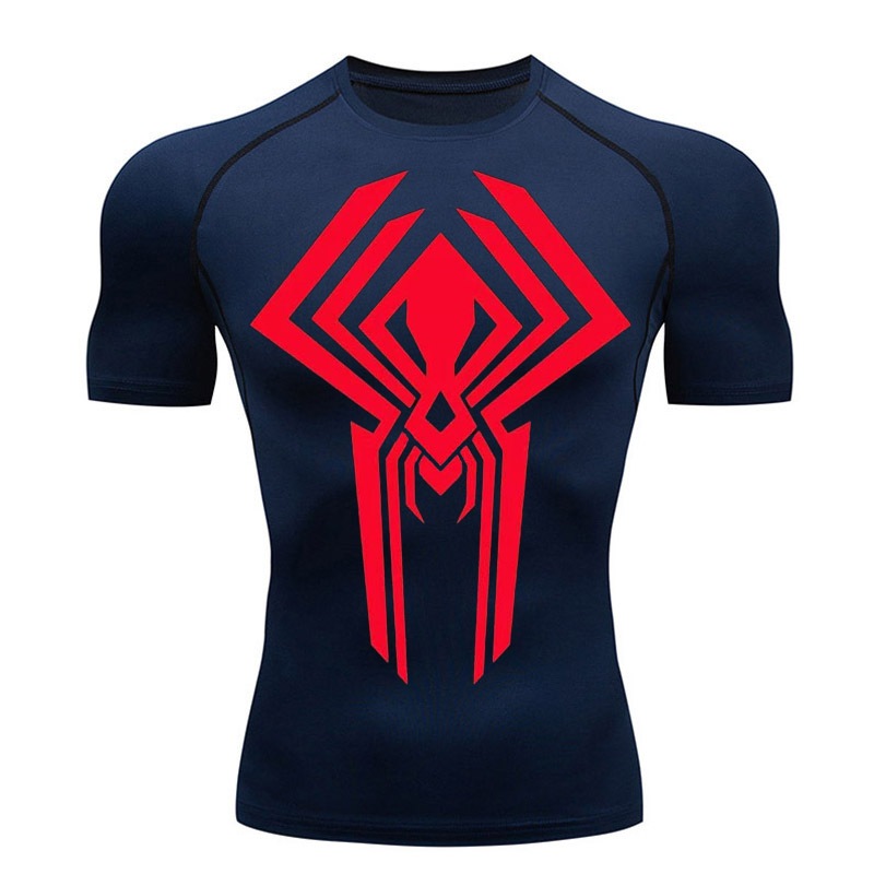 Esportes De Verão Camisa De Compressão Manga Curta Ginástica Masculina Quick Dry Comprida Activewear 2099 Homem-Aranha
