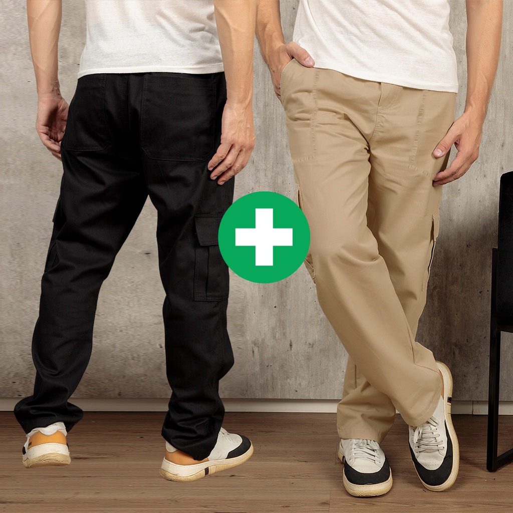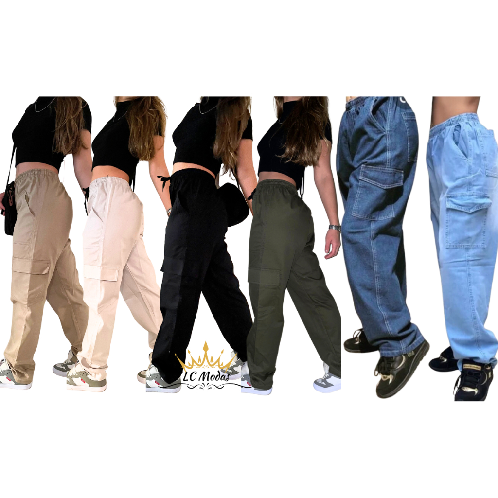 KIT 2 Calça Cargo Unissex Masculina Feminina Promoção Larga Preta Bege Cáqui Sarja Moda Skate
