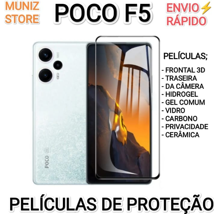 Películas Xiaomi Poco F5 Protetor de Tela Penicula Vidro 3D Vidro Comum, Película Traseira Transparente, Pelicula Camera, Hydrogel, Privacidade