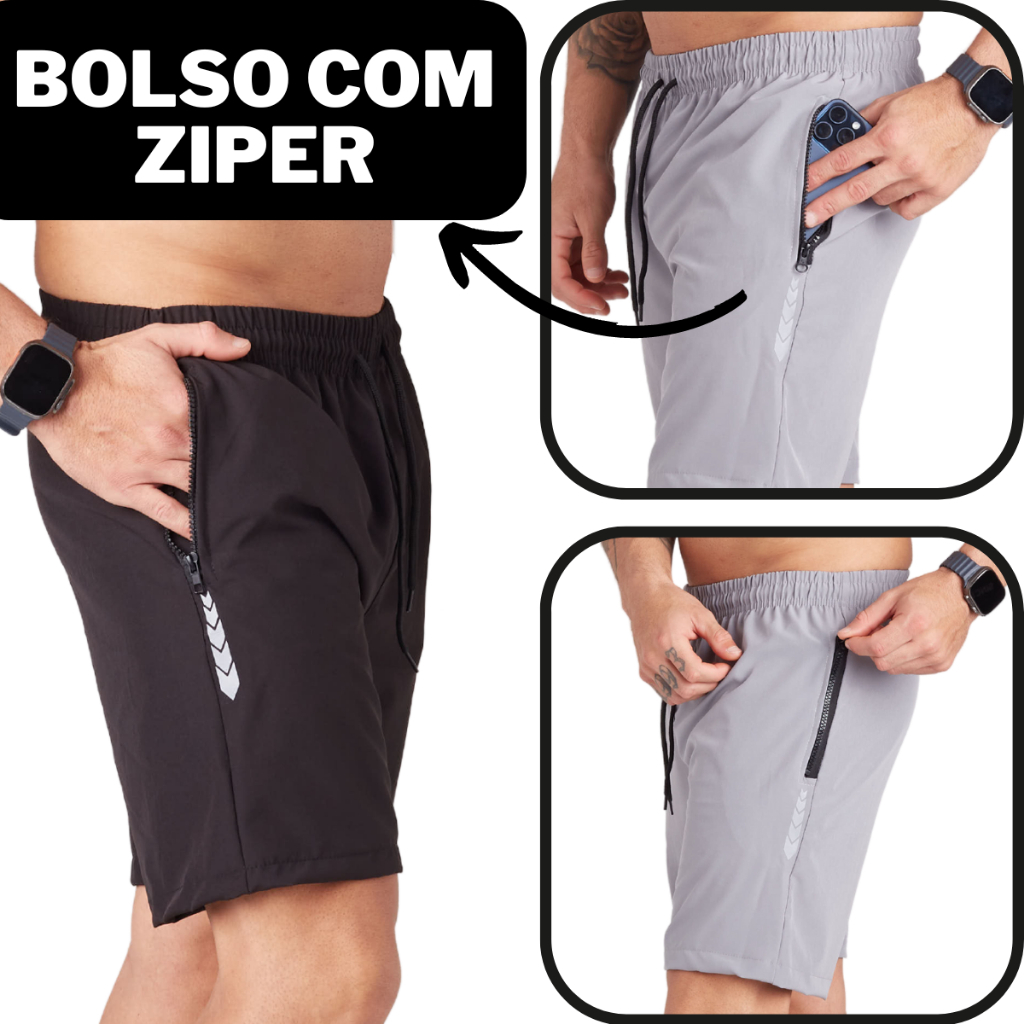 Bermuda Masculina Secagem Rápida Confortável Para Academia Alta Qualidade Short Tactel Bolso Com Zíper
