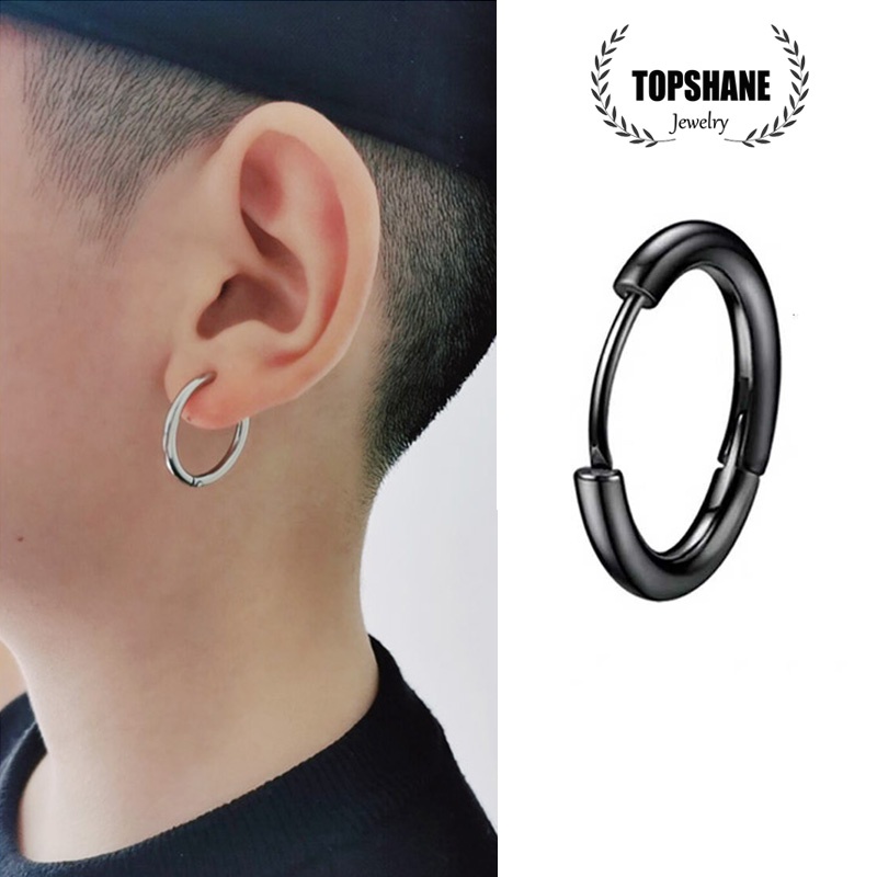 Unissex Punk Hip Hop Aço Inoxidável Prata Preto Brincos De Moda Simples Círculo Para Mulheres