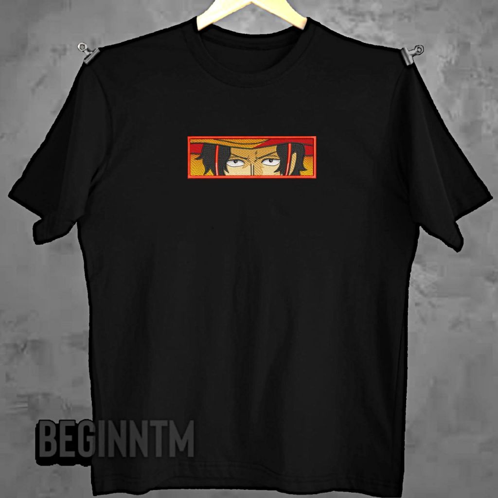 Camiseta Ace eyes bordado One piece blusa Bordado anime camisa 100% algodao
