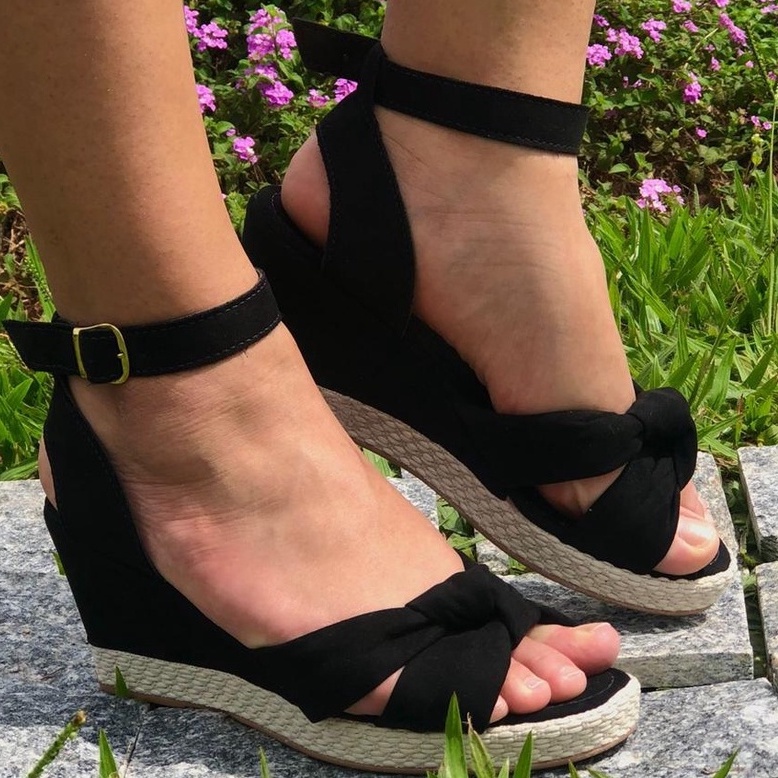 Sandália Sapato Feminino Espadrile Scarpin Salto Anabela Macio Leve Confortável Casual Preto