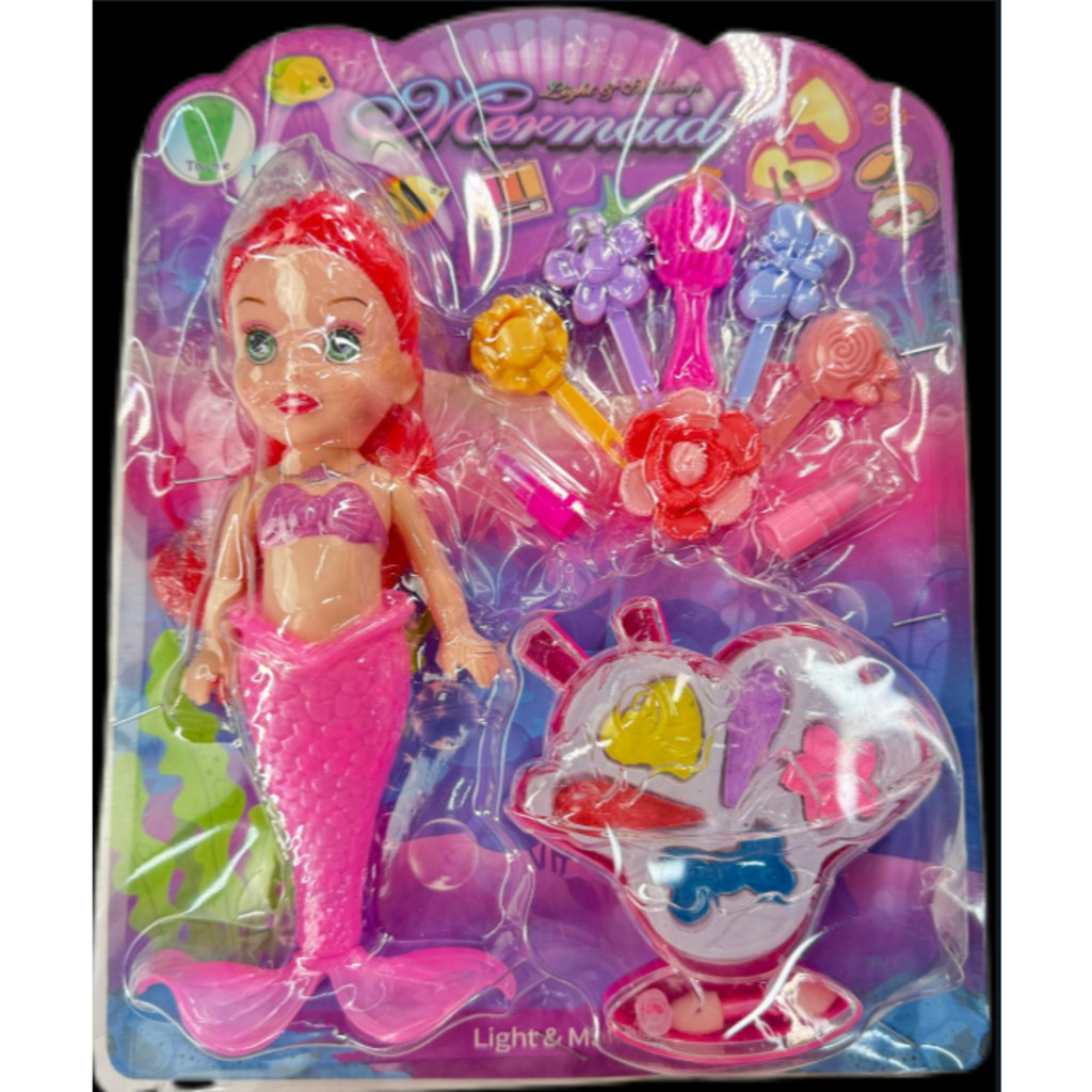 Boneca e Brinquedo de Maquiagem Princesa Sereia com Luz LED